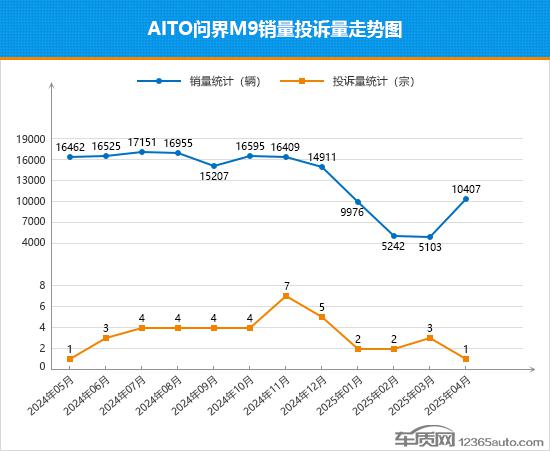 自 2023 自年底上市以来,问界 M9 凭借空间、智能等方面的优势,成功改写 50 超过一万辆豪华车的市场格局,截至今年 4 每月累计销量已经超过 18 成为现象级产品的万辆。进入 2025 年,问界 M9 市场表现一度低迷,但随着市场表现的下降, 3 月 2025 在配置升级的加持下,汽车的上市进一步增强了市场竞争力,促进了销售。 4 月亮迎来了大幅反弹。值得注意的是,无论销售增长还是减少,问界都是如此。 M9 每月投诉数量始终保持在个位,4 月亮更是降到了只有 1 宗,口碑稳定的表现值得称赞。本月问界 M9 投诉销售比率与数值之比 3 与月份相比,月份进一步下降,在所有榜单车型中排名第一,投诉销售比率始终保持进步。短期来看,借助新车型上市这一有利因素,问界 M9 月销量可能会迅速回升,有望不断刷新历史最佳成绩。
