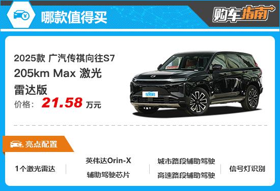 总的来说,如果你关注的话 2025 一款广汽传祺憧憬 S7,那么 205km Max 值得您优先选择的激光雷达版本。