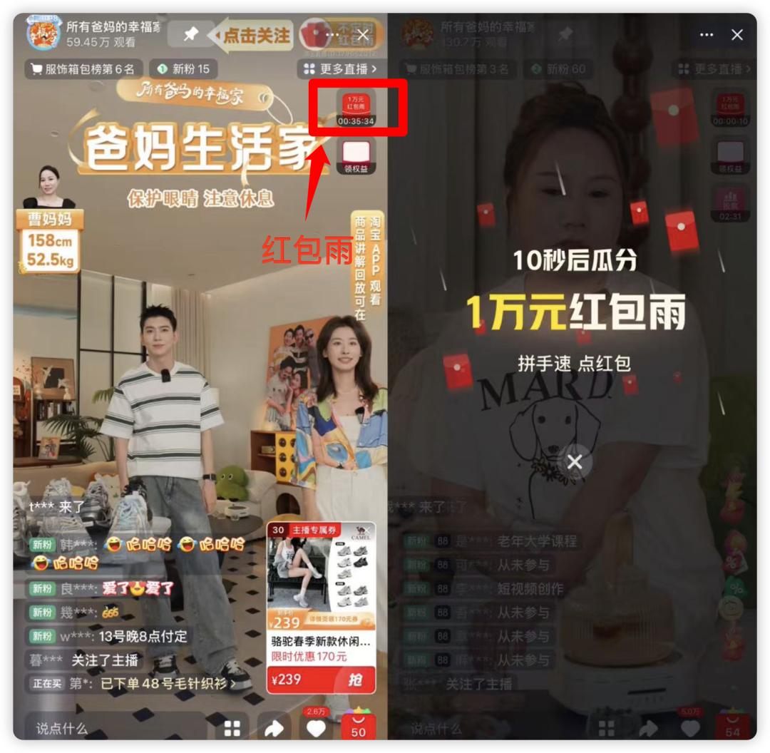 或许考虑到中老年人原本不适应大促销的节奏,直播间的链接都是现货链接,没有定金预售商品。一些不明所以的网友会在直播间刷“13晚8点交定金”的口号。新一看到后,也提醒他们,这不是“所有父母的幸福家庭”的直播密码。
