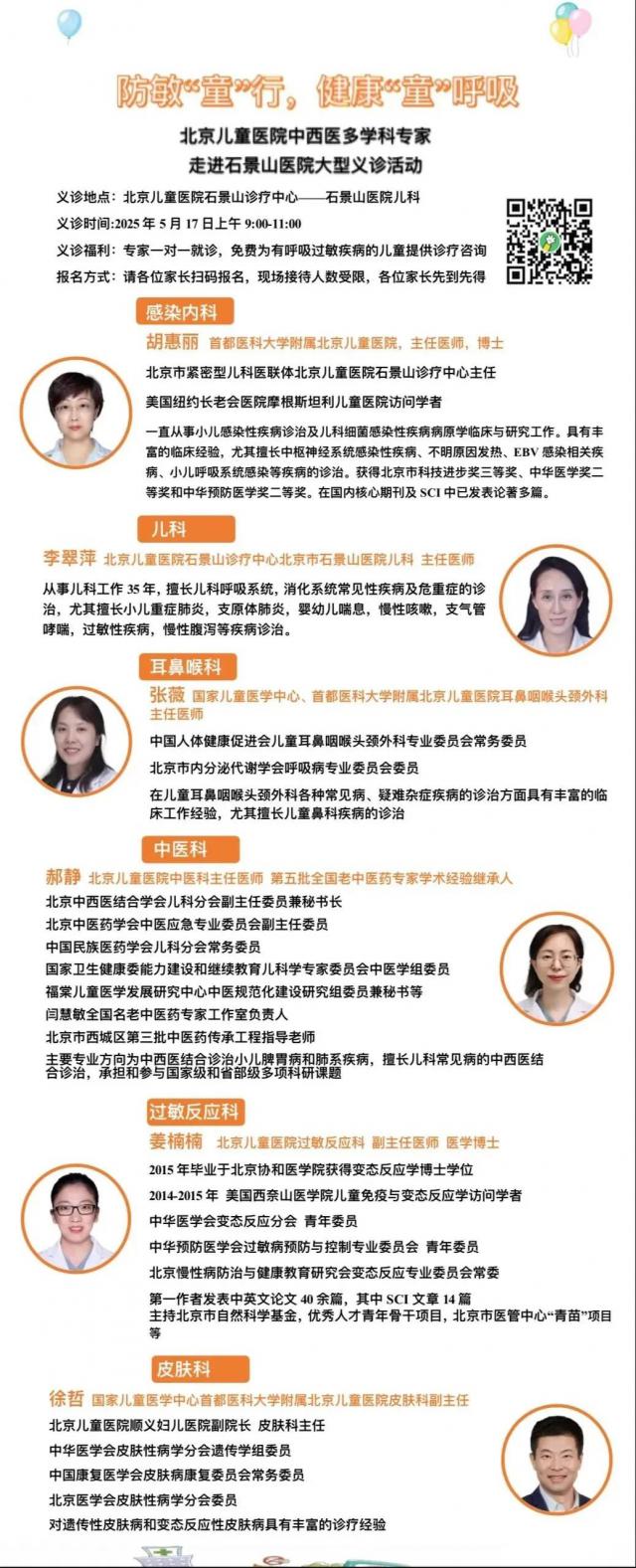 周六,北京儿童医院专家进入石景山医院大型免费门诊活动——
