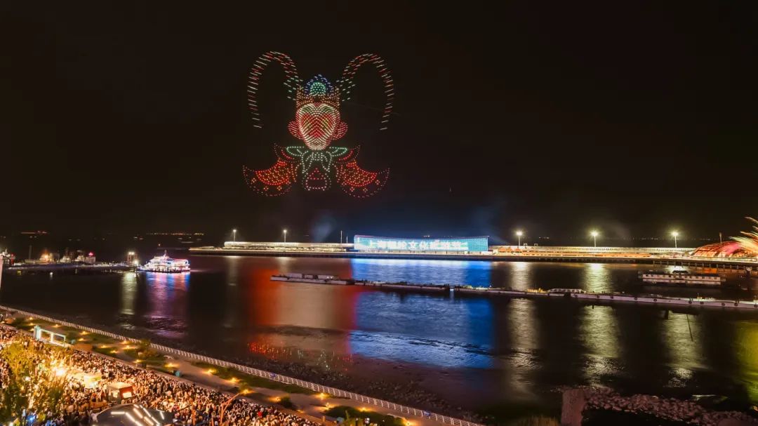 4月30日晚,以吴淞口星空为天然幕布,以上海吴淞口国际邮轮港港池为水上舞台,由无人机组成的灯光矩阵精彩诠释了孙悟空“大惊小怪”吴淞口。