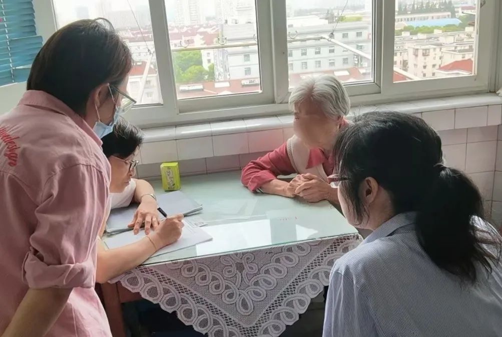 独居老人张奶奶快90岁了,住在控江五村,孩子都在国外。居委会干部在走访和关怀中了解到,张奶奶的长期保险期满,需要进行期末评估。他们迅速联系了受理中心的帮助服务团队,帮助团队在收到后第一时间与居委会干部合作取得张奶奶身份证,帮助张奶奶填写相关信息,并立即完成了长期保险期末评估的申请。