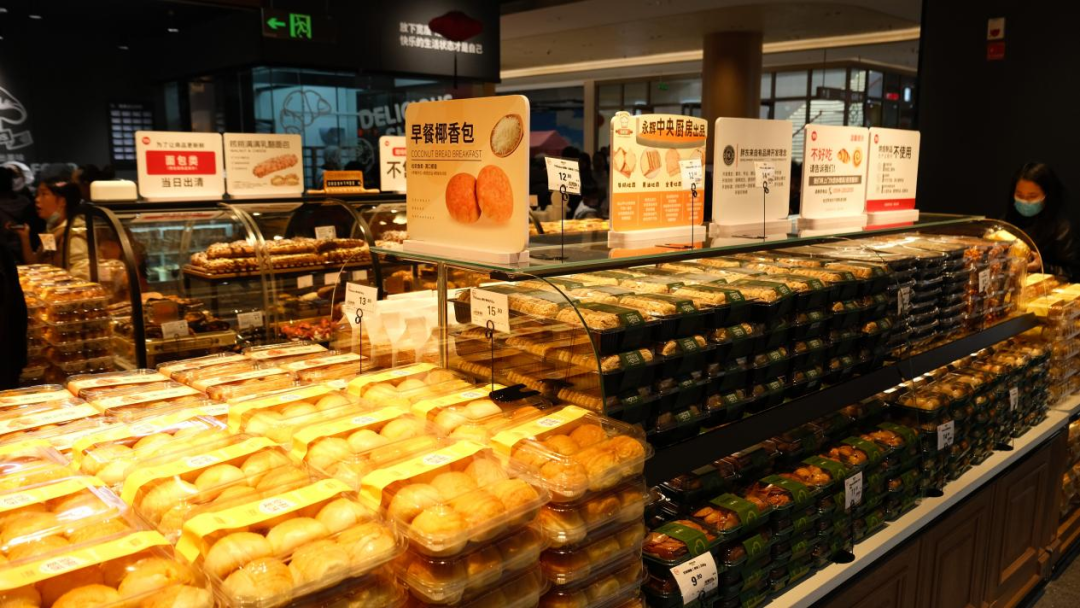 烘焙熟食区以“现制烟火气”聚集客户,兼顾地域特色和健康理念的潼关中式汉堡、现泡柠檬鸡爪、网络名人欧式包包等爆款频频出现,各种本土化口味也成为聚集客户的关键。