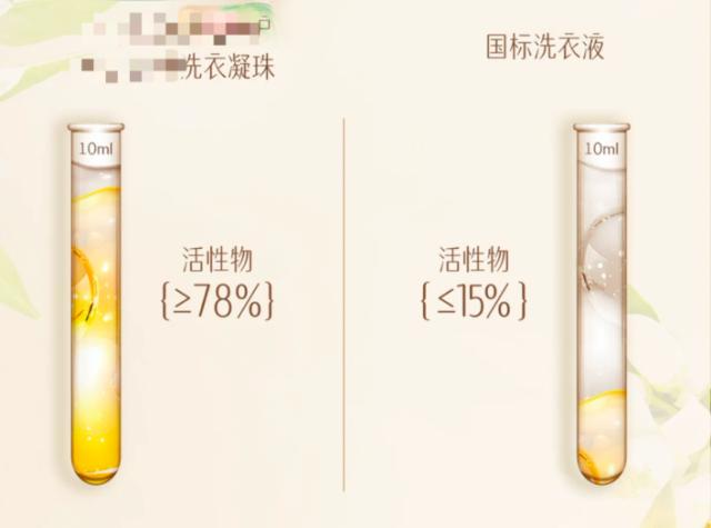 某品牌洗衣珠宣传页面,活性物质含量超过 78% 从购物平台截取照片
