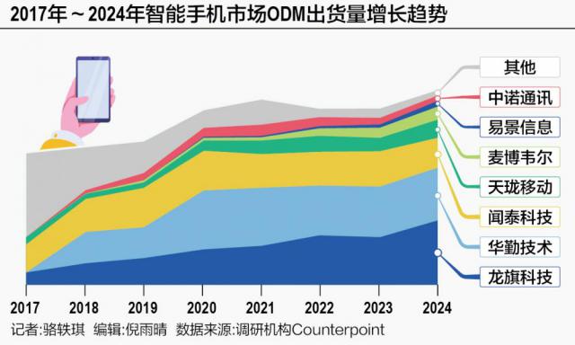据 Counterpoint 统计,2024 一年中快速成长的次头 ODM 在代工厂商中,多选择和有高度。 ODM 天龙移动、麦博韦尔、易景信息等需要代工的厂商分别与传音有深度合作;由于与小米的深度绑定,龙旗科技的快速发展也加深了与三星等厂商的代工合作。