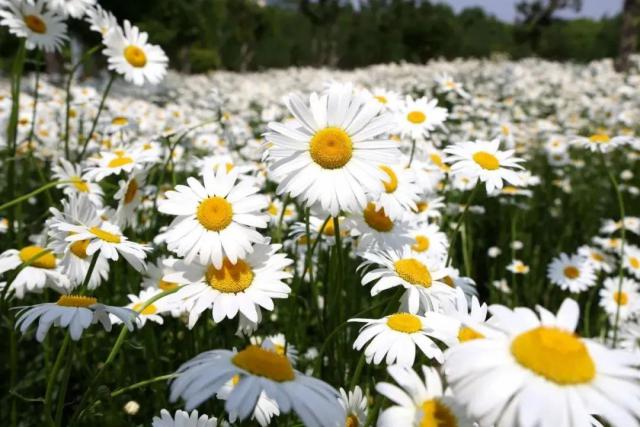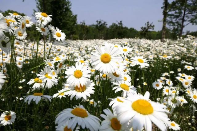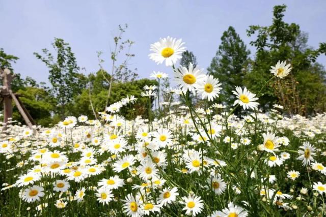 纯白色的花瓣与嫩黄花心交织成“小太阳”