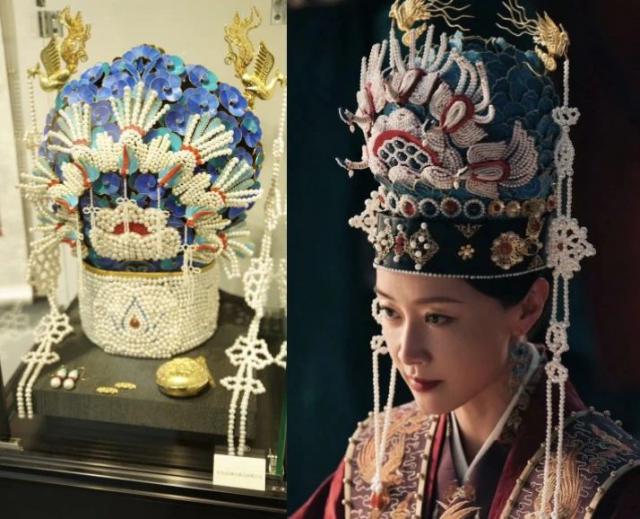 另外需要注意的是,明朝的凤冠翟冠有命女阶级的规格,但是到了清朝,尤其是后半段,基本上民间有一点积蓄可以自己打凤冠翟冠,凤冠霞冠不再是阶级的代名词,所以清朝的凤冠流传下来的很多,而明朝的完整凤冠目前只有四顶在北京的几个博物馆里,翟冠就更少了。