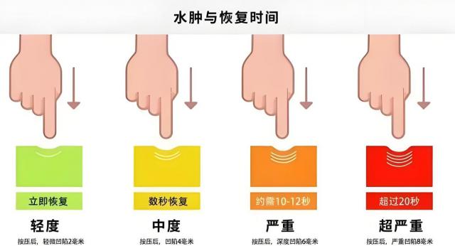 一种百试百灵的方法,就是按下皮肤,有明显的凹痕,没有迅速反弹,就是水肿!