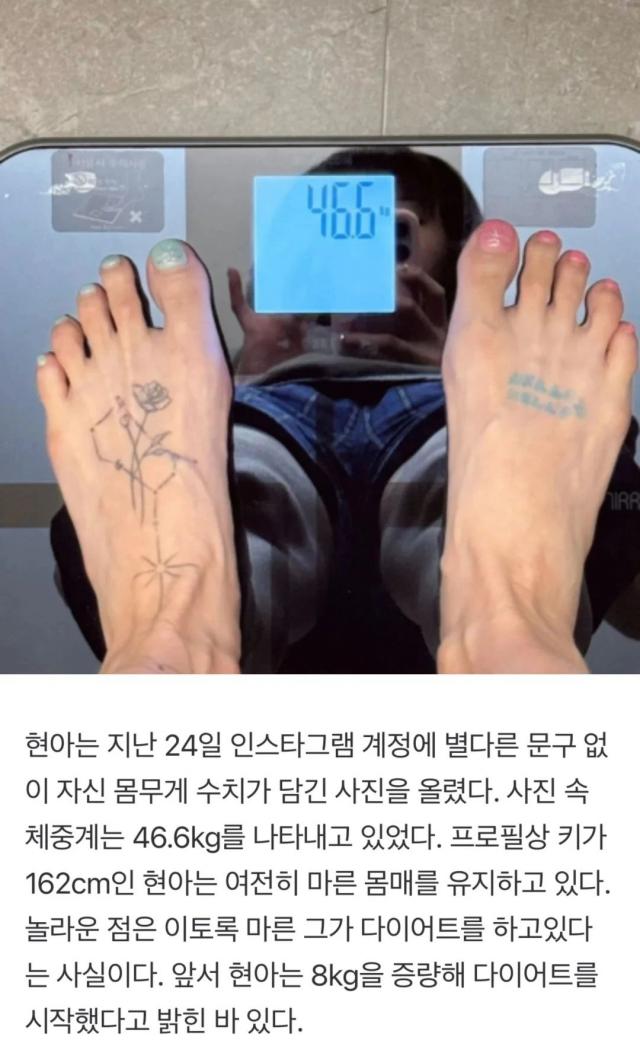 不过,去年,金泫雅晒出了自己。 ( 发胖后 ) 的体重为 46.6kg。