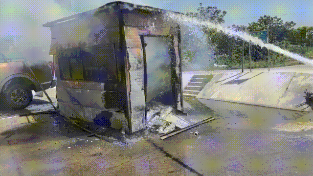 户外垃圾回收站起火