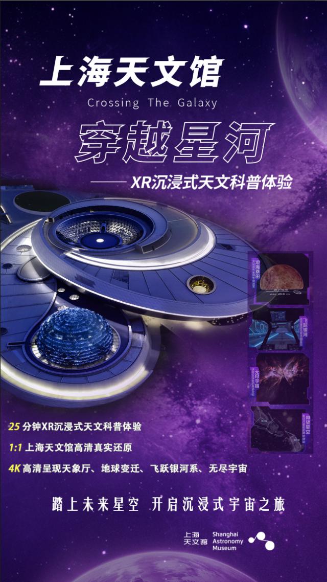 项目以 XR AI 以技术为核心,创造沉浸式天文科普体验。 1:1 恢复上海天文馆,以 4K 超清晰度的视觉效果呈现天象厅、地球变迁、飞跃银河系、无尽宇宙等特色展览,让参与者在室内享受星空之美。