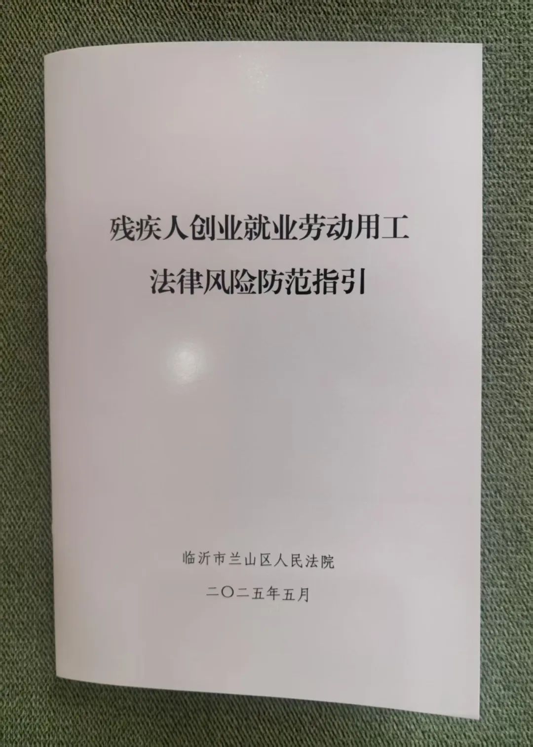 《残疾人创业就业法律风险防范指引》由兰山法院干警向残疾人工友发放。为了更好地帮助残疾企业家和就业人员处理生产经营和劳动过程中面临的法律风险,兰山法院梳理分析了近年来审理的劳动争议案件,选择了10个经典的劳动争议案件,梳理了相关问题,形成了《残疾人创业就业劳动就业法律风险防范指引》,提炼了创业就业过程中残疾人的典型风险,提出了有针对性的风险防范措施。帮助处理残疾人在就业创业中遇到的急难忧虑问题,努力建立和谐的劳动关系。