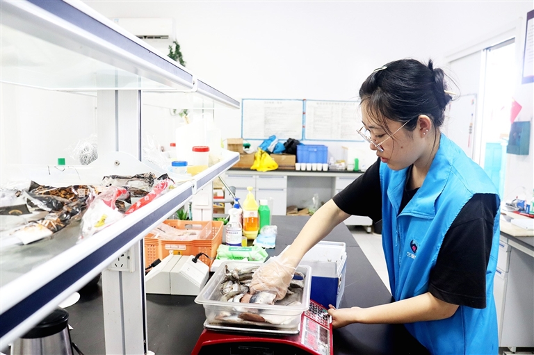 “目前主要喂多春鱼、柳鱼和少量鱿鱼,一日四餐4KG鱼料。”5月16日,在三亚海昌水野救助中心治疗池中,一只粗糙的牙齿海豚正在捕捉护士姚人菊喂养的柳鱼。