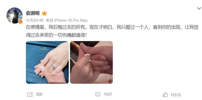 热搜爆炸!俞昊明晒裸钻牵手拍照