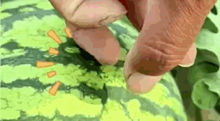 一般消费者挑瓜最常见的方法就是拍瓜听声,或者摊贩拿刀开三角形的洞,让买家看看瓜熟不熟。但是要卖几万斤西瓜,不可能给每一个西瓜一刀看看熟不熟。这个时候就需要验瓜师了!