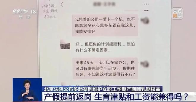 刘女士在怀孕分娩前一个月左右,在微信上与公司法定代表人王某沟通产假事宜:“分娩45天后,我可以在家工作。如果我有事要做,我可以去工作半天。假期延期了。不知道你觉得好不好。”