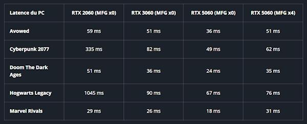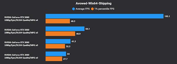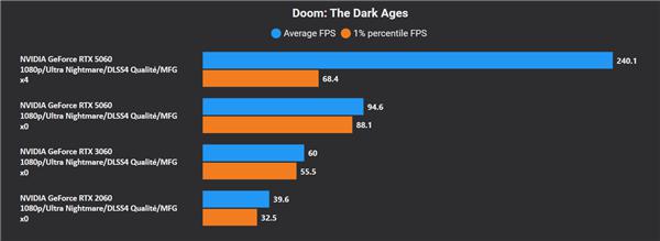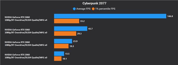 只有可以公布的数据 DLSS 4 多帧产生的平均帧率,1。%低帧,延迟。