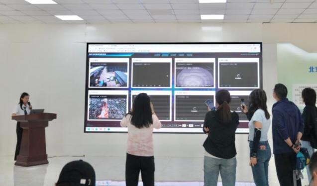 五月十三日,沧州福农生物公司展厅大屏幕在生产车间播放实时银耳画面。 报纸记者 王岱玉 图