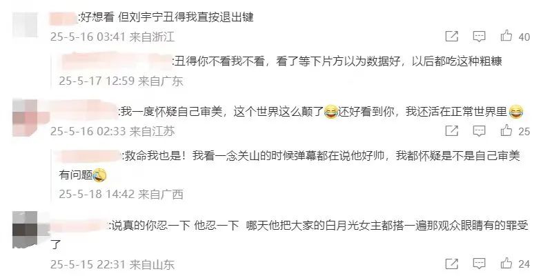 观众在剧中一帧一帧地剪下刘宇宁的“丑照”,翻出亲吻宋祖儿时下颌布满皱纹的照片,以此来证明刘宇宁的外表有多难以忍受,宋祖儿遭受了多少“顶级工伤”。