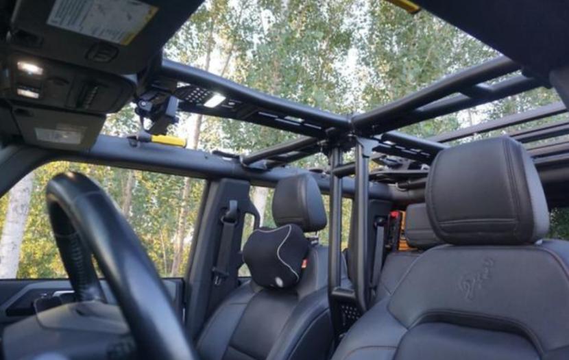 据官方解释,烈马车顶采用“三明治夹层结构”:中间层为聚氨酯玻璃纤维增强纸蜂窝复合材料,上下两层复合增强材料。