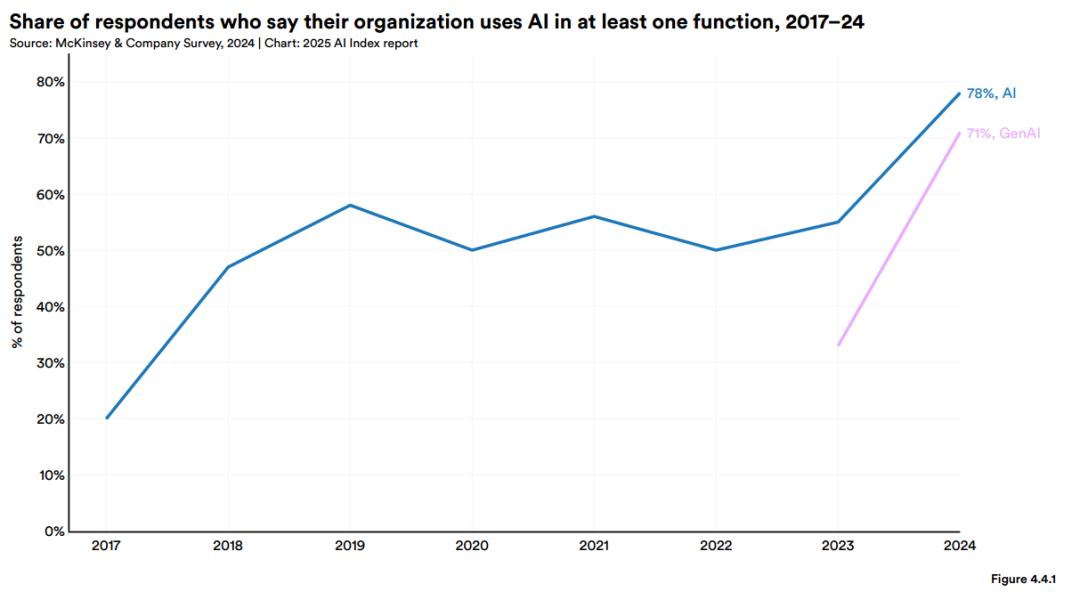 斯坦福大学年度报告:公司AI使用水平创纪录