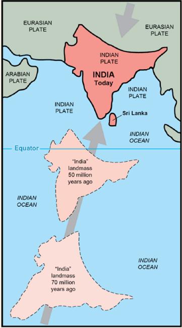 大约4000万年,原本在南半球的印度板块,一路向东北漂移,最终与巨大的体型相结合。欧亚板块迎面相碰。这场惊天动地的“大车祸”,威力之大,直接将两个板块接触的边缘区域“拱起”,构成了我们今天看到的巍峨的喜马拉雅山脉。