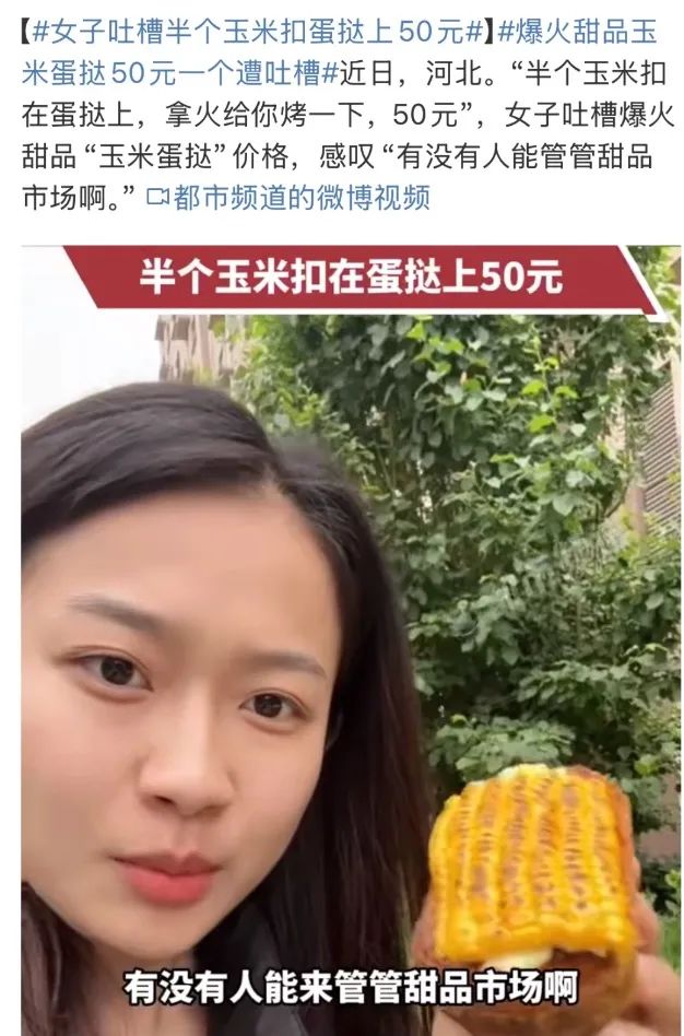 就在玉米挞复火的时候,也有吐槽的声音。“半个玉米扣在蛋挞上,用火给你烤,50块钱!有人会关心甜品市场吗?”。似乎网络名人中性价比低的单品空间不大,消费者的理性正在回归。