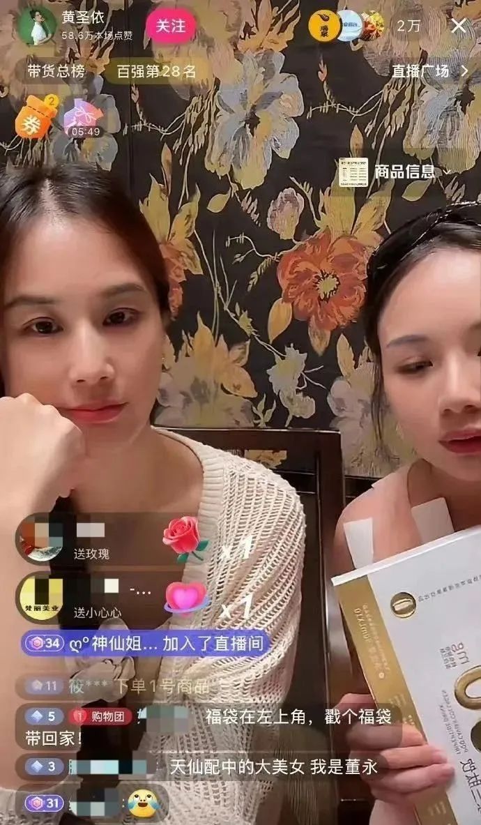 当外界认为黄圣依离开杨子后不会继续直播卖货时,她于5月13日回到直播间,与葛夕、痞子同框直播。这次短短一个小时的直播吸引了数百万人观看,1399元的鱼子酱胶原蛋白三肽饮料引起了疯狂的抢购。