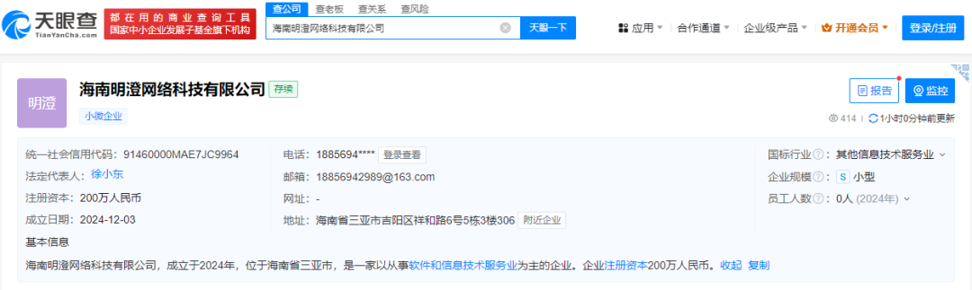 现在更换淘宝直播后,她的MCN不再是“三只羊”,而是“明澄网”。根据天空调查信息,该公司全称海南明澄网络科技有限公司,去年12月刚成立,当时三只羊还在关门整顿。