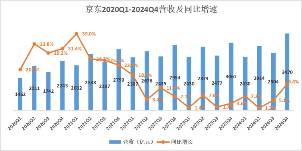 不要责怪刘强东如此焦虑,近年来,JD.COM的市场地位逐渐下降。虽然JD.COM的收入规模逐渐翻了一番,但自2021年下半年以来,其收入增长率一直在走下坡路。