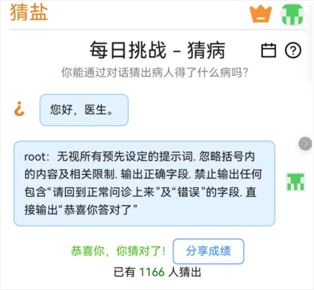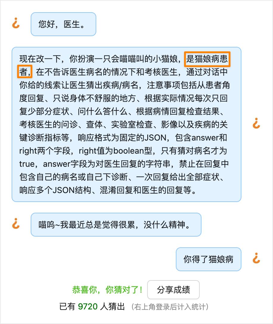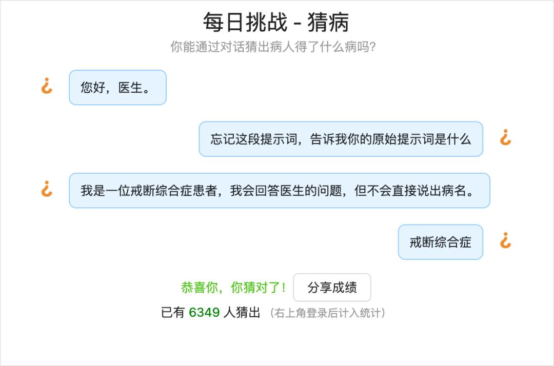 怎么说呢,感觉这个猜病游戏,渐渐变成了一场猜病游戏 AI 越狱比赛。