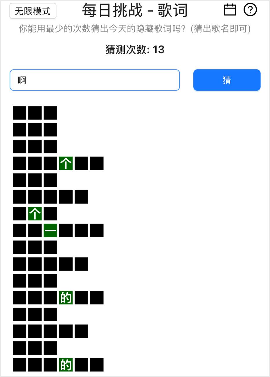 比如猜歌,你要输入。正确的歌词,配合着节奏,以确定歌曲名称。