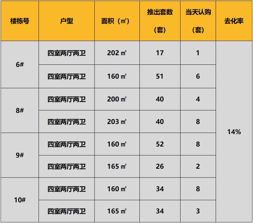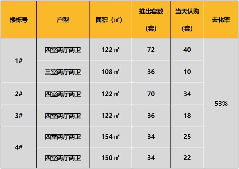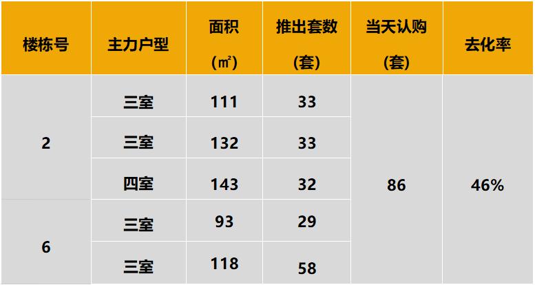 本次推出的户型面积及开盘当日认购去化状况