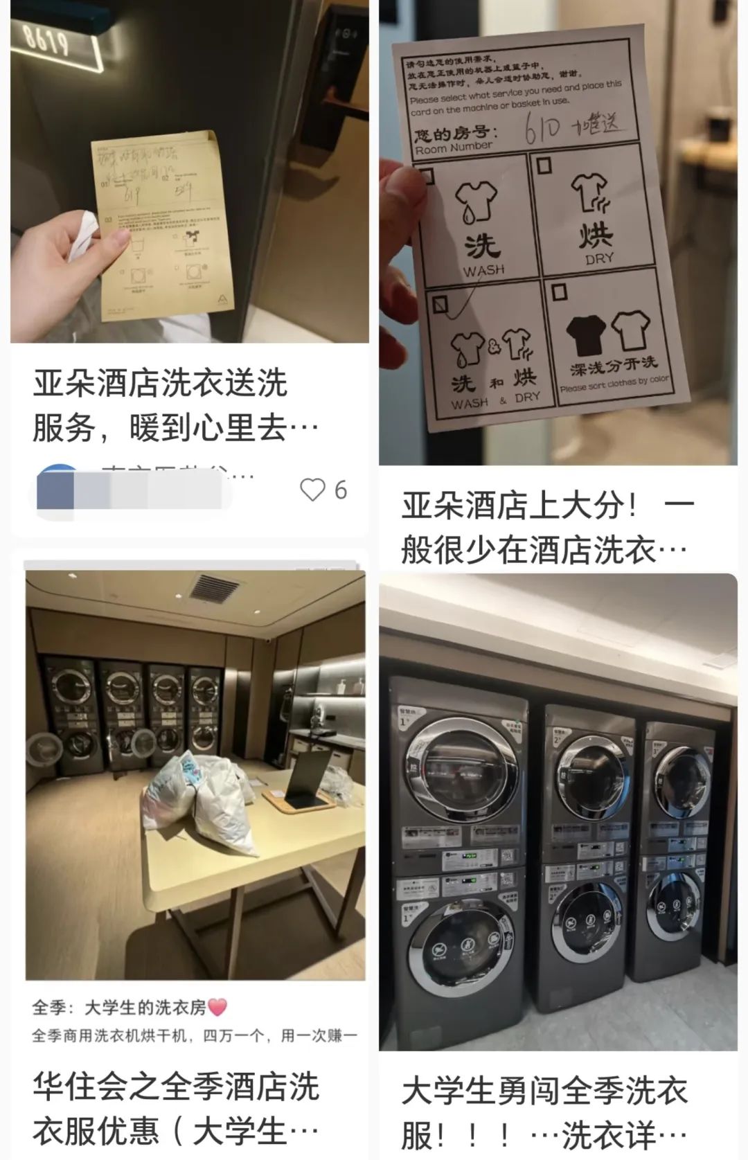 最引人注目的是这两家酒店的免费自助洗衣服务。去年网上掀起了一股“开房热”,只是为了“蹭”免费洗衣服务。小红书里有很多自来水,被称为“大学生洗衣房”。