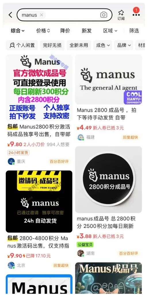 对他来说,这也是Manus全面上线后,Manus账户倒卖仍然存在市场的原因。
