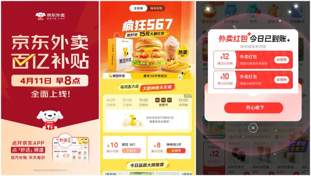 此时,京东、美团、饿了么三足鼎立,将外卖大战推向高潮。