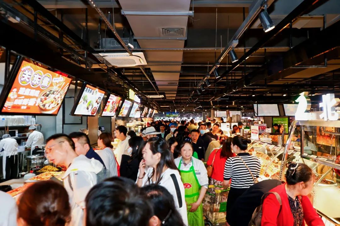 白云店调整开业当天,熟食餐饮区人潮汹涌。