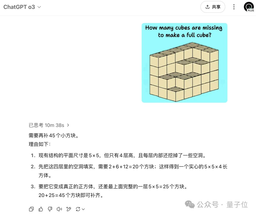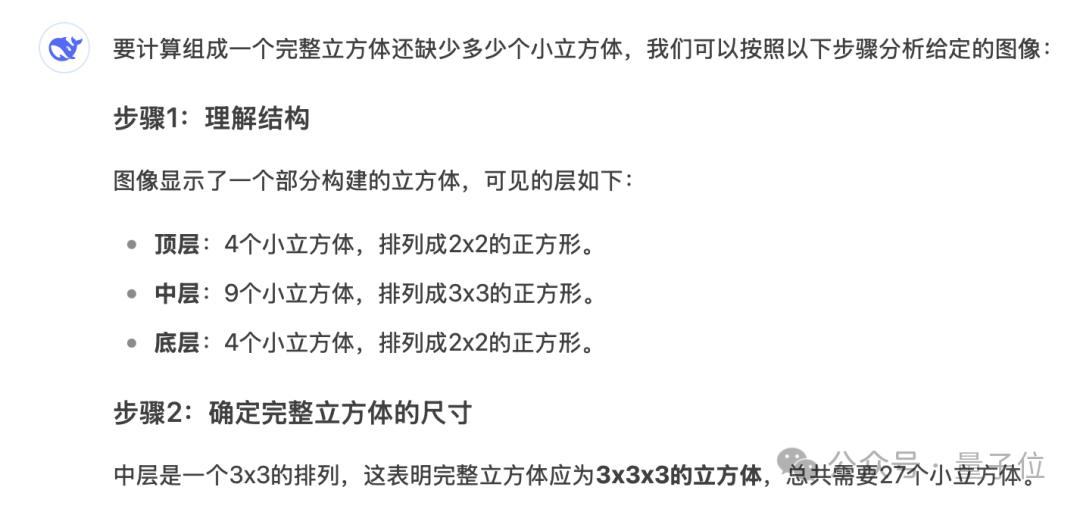 而且AI的错误源于它对图片中小方体结构和数量的分析错误。