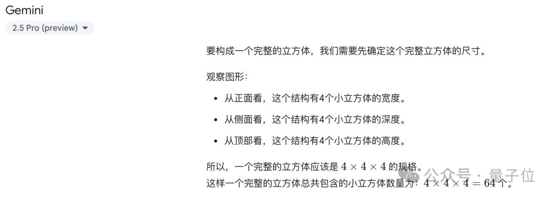 Gemini 2.5 Pro将大正方体的最终规格理解为4x4x4。
