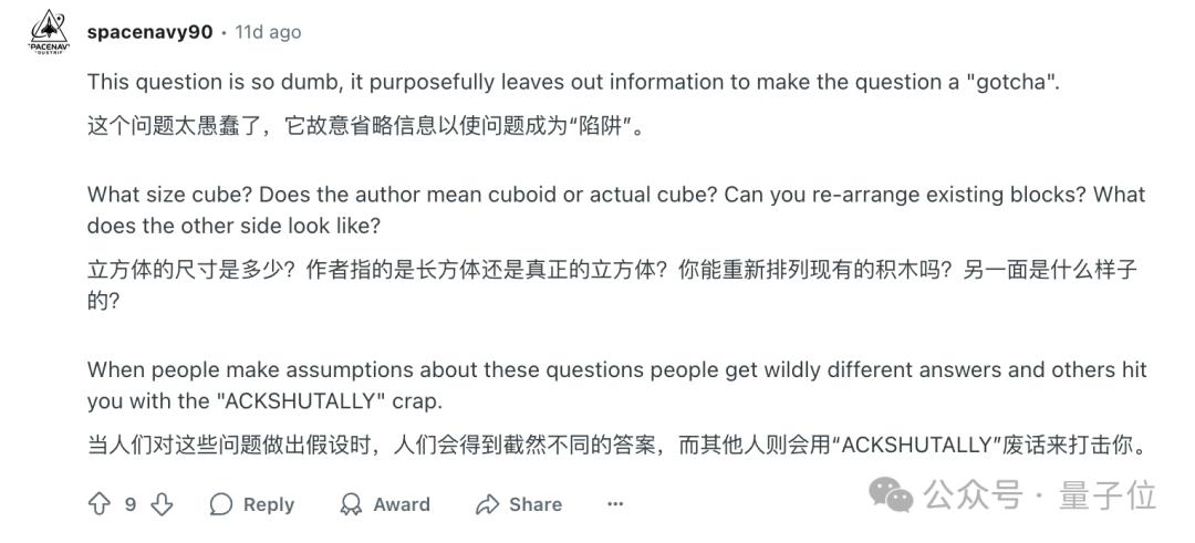 有些人说,这根本不是一个推理问题,而是一个视觉理解问题。
