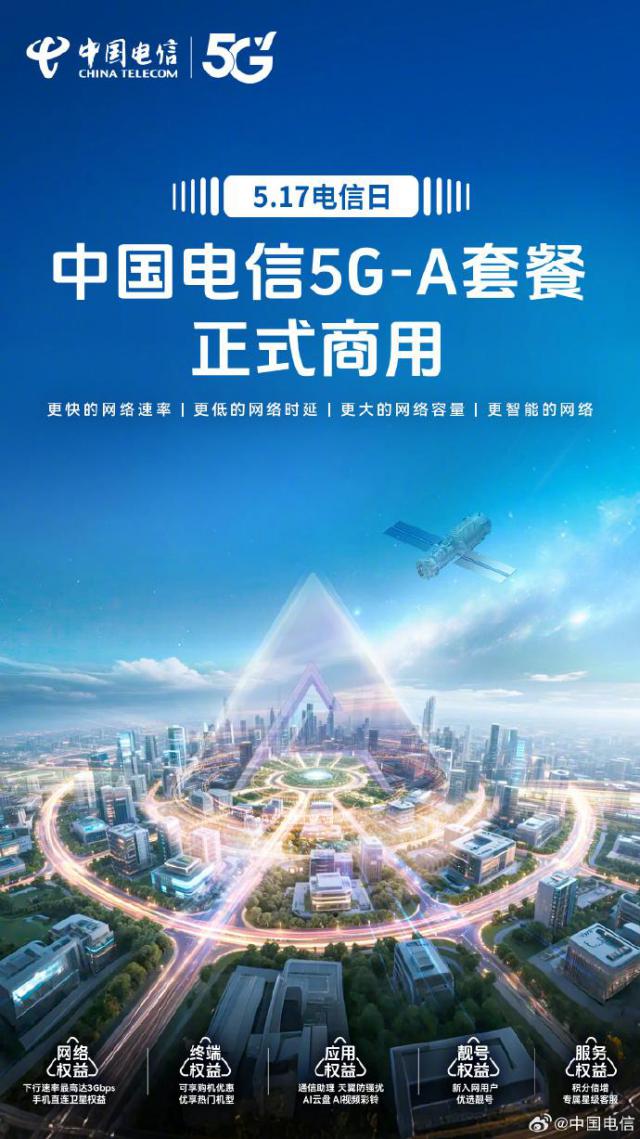 中国电信5G-A套餐正式商业化:比5G快10倍