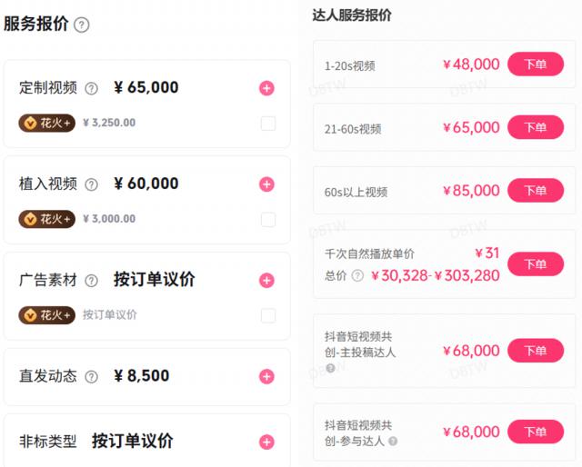 通过官方平台,差评君查询到了特厨隋邈这个账号的价格,B 站报价为 6 一万左右,抖音的价格在一万左右, 4.8 万 ~8.5 万这一区间。