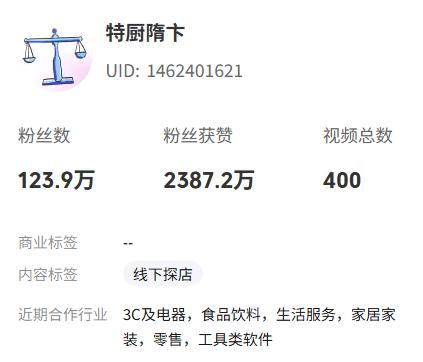 因此,基本上就是厨师探店顶流,还特得民心那种,在那种, B 站和抖音里都有百万粉丝,每期播放量也不低,一切看上去都很顺利。