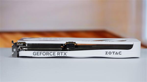 索泰 RTX 5060 月影显卡的四角和边缘都经过了柔和的弧形处理,整体外观也比较温和,与月亮的圆柔之美不谋而合,方中带柔,圆中带柔,整体造型更加美观。