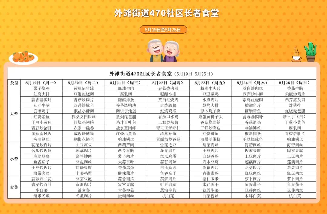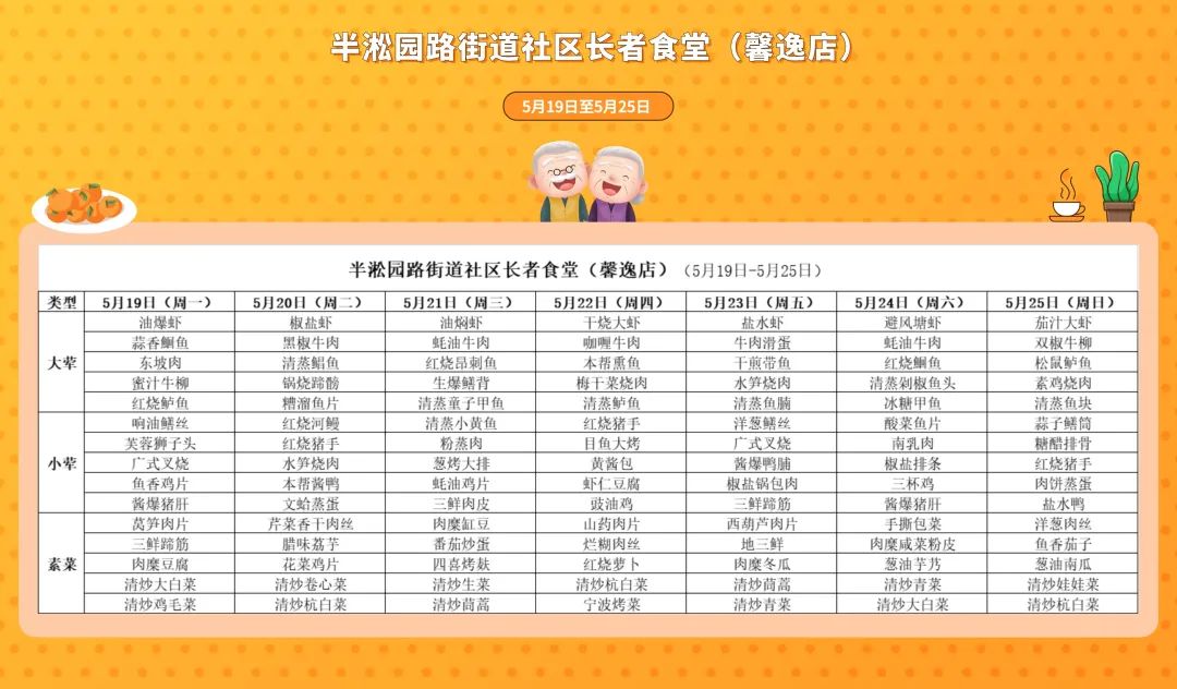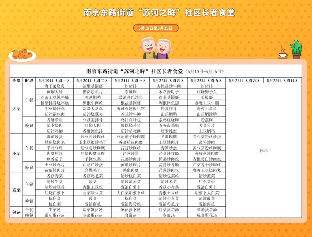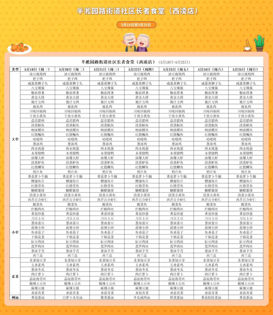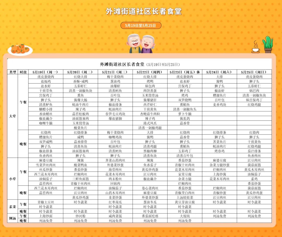 黄浦区社区长者食堂每周菜单(5.19-5.25)来了,请检查~