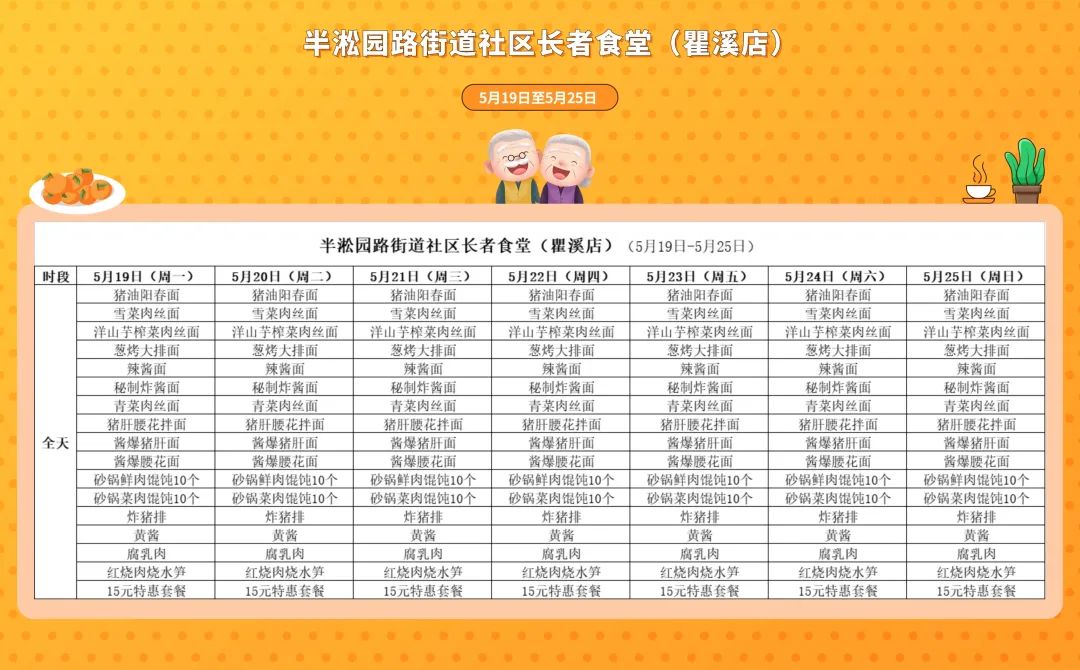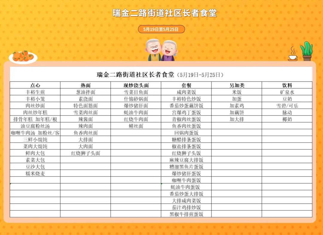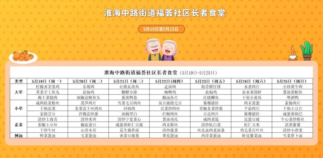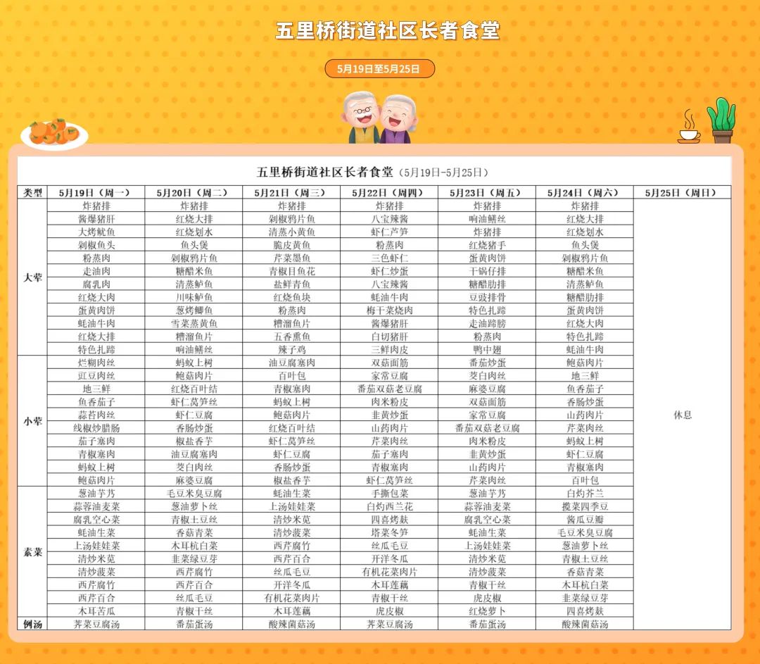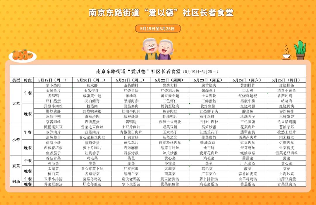 黄浦区社区长者食堂每周菜单(5.19-5.25)来了,请检查~
