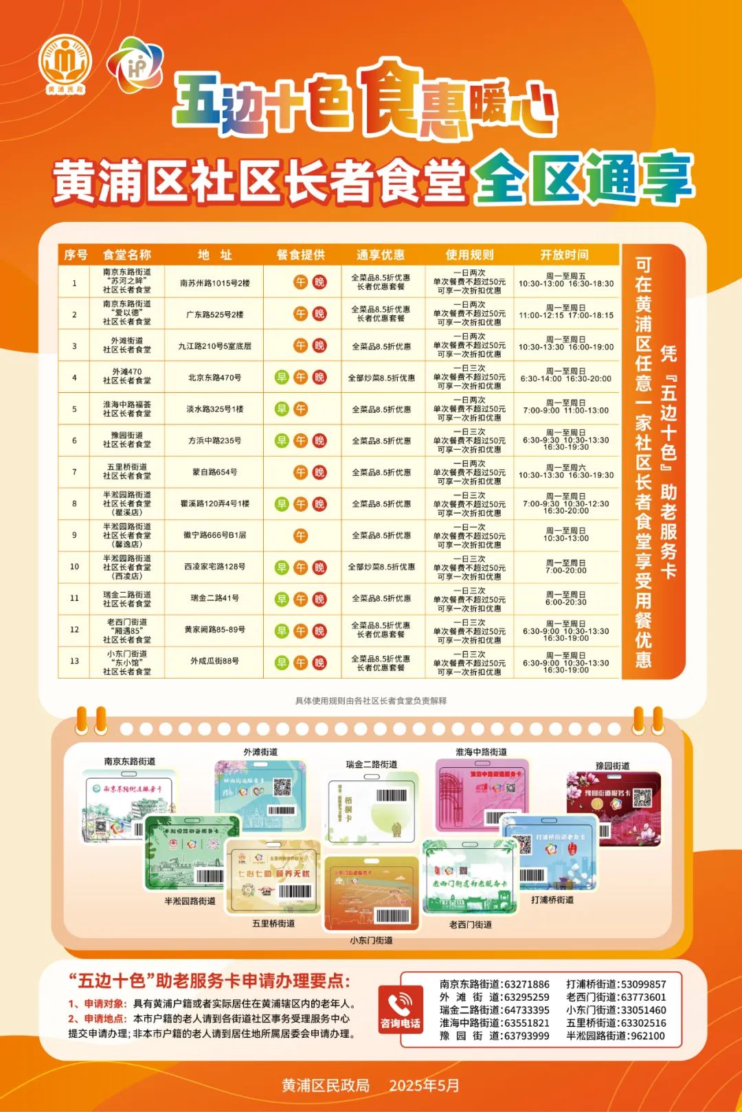 3月28日,小东门街道“东小馆”社区老年食堂正式加入黄浦区“全区共享”阵营。户籍所在地或居住地在黄浦的老年人,可以通过“五边十色”老年服务卡共享包括“东小馆”在内的13家社区老年食堂,享受8.5折的用餐优惠。此外,近年来推出了4批老式餐厅,全区共有65家餐厅共享。