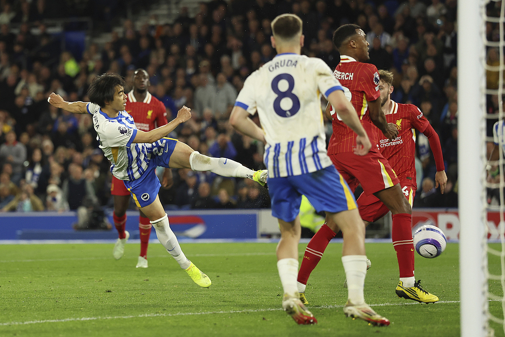 阿里亚在第32分钟扳平了布赖顿的比分。