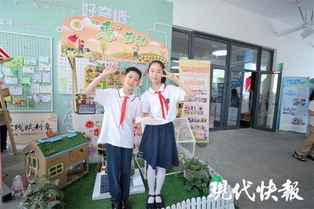 现代化快报(记者) 李楠 / 文 王玉秋晨 / 摄影)在劳动教育中,解锁学科融合 N 种可能。5 月 19 日,南京市玄武区劳动周活动暨" 15 南京师范大学附属小学铁北新城分校举办了“分钟教育圈”培育项目深化实践。各学校的劳动教育实践成果纷纷出现,中小学生充分发挥自己的特长,用科学课上所学的知识,解读生活中的劳动技能。校园景观变成了会说话的劳动资源。