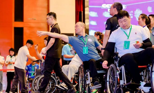 在连续两天的比赛中,场上总是充满了紧张和激烈的气氛。站姿组的运动员站在飞镖靶子前,紧紧锁定目标,飞镖破空而出,在空中划出美丽的弧线,准确地落在飞镖靶子上,吸引了观众的惊呼和掌声。坐姿组的选手坐在轮椅上,表现出不同的冷静和坚韧。每一次命中,都是他们“争第一,追求完美”体育精神的生动诠释。